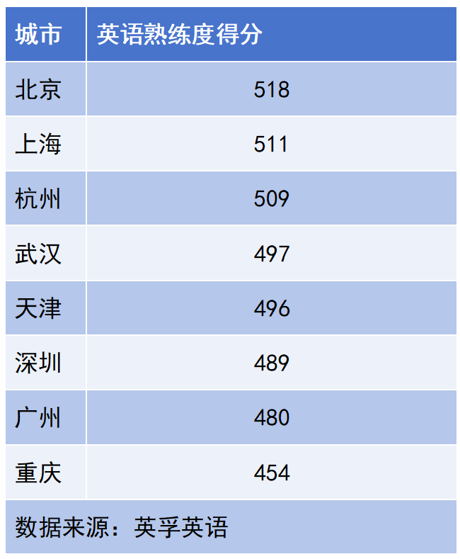 另一方面,地区居民的英语熟练度水平,也能够提供国际参会者更便利的城市体验。比如英孚英语每年都会对全球的母语为非英语的城市进行“英语熟练度”排名,在国内,北京和上海的熟练度排名前两位,而杭州超过了武汉、天津、深圳、广州、重庆等城市,排名第3位。