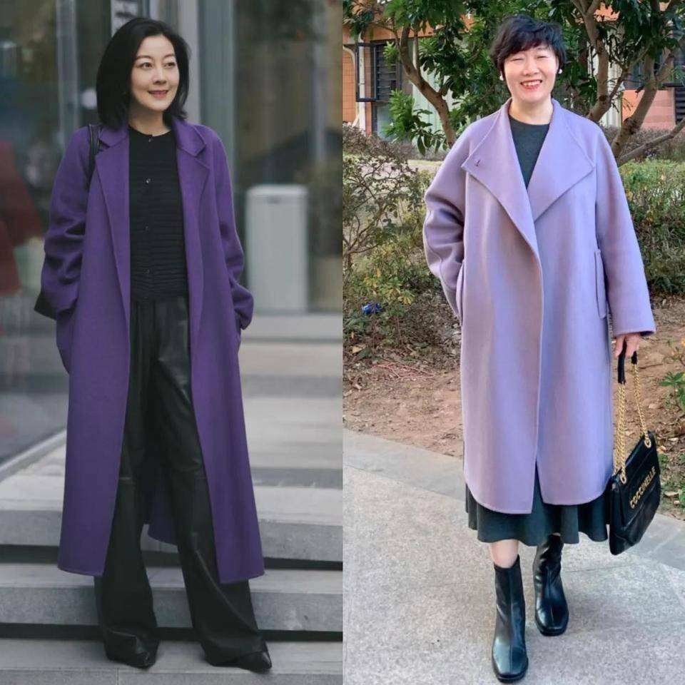 千万不要选择深紫色的大衣来穿搭,对于普通的中老年女性很难驾驭得住,除非你的气质和气场包括身材很好,那么穿在身上确实有可能穿出高级感。但要明白自己的优缺点,再去选择这样的深紫色大衣外套。